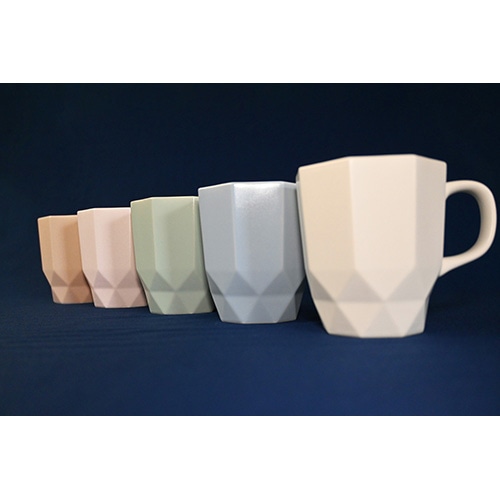 彩度を抑えたマットで上品なカラーとダイヤカットのマグ。