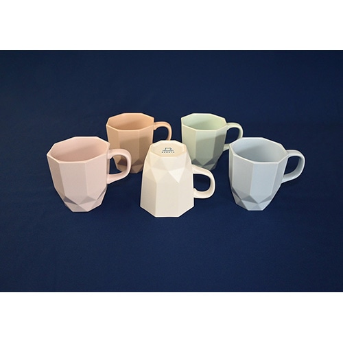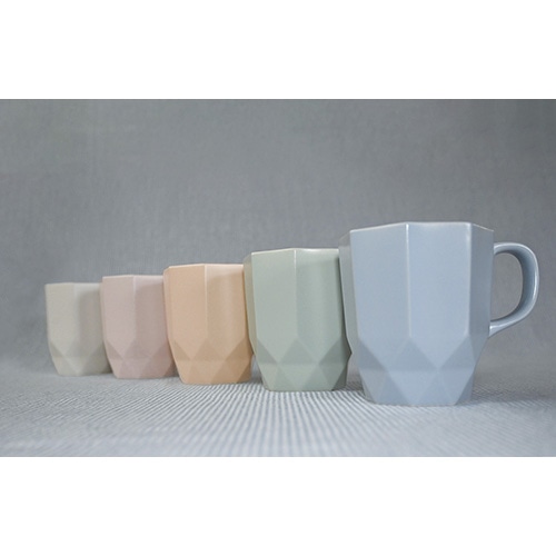 彩度を抑えたマットで上品なカラーとダイヤカットのマグ。