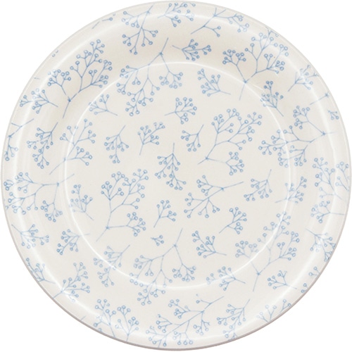 温かみのあるオフホワイトのベース色に、落ち着いた色合いの植物柄のデザイン。ボウルは内側にも絵柄を施しました。おもてなしにも普段使いにも。テーブルがぱっと華やぎます。