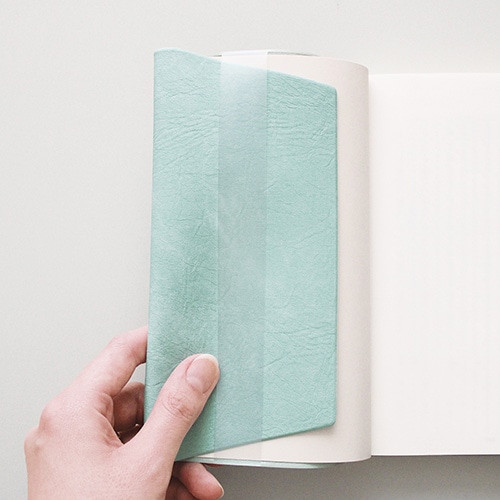 ワンポイントモチーフを箔押しした新書サイズのブックカバー。幅110×縦173×厚み25㎜までの新書に対応しています。背幅に合わせて折り返しを調整できます。