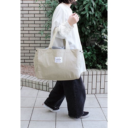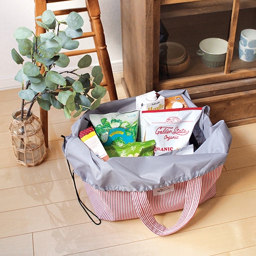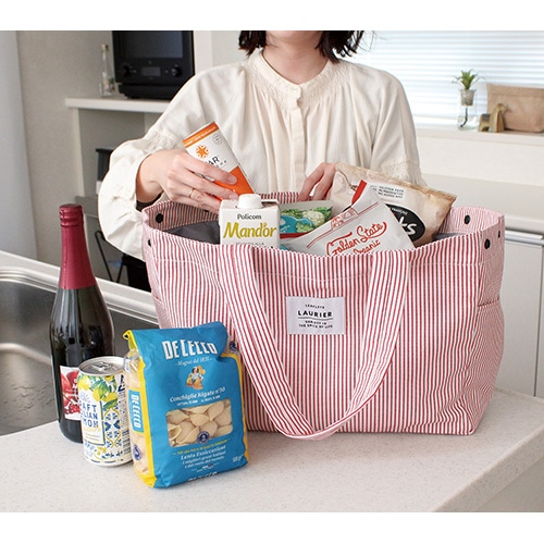 レジカゴサイズのショッピングバッグ。両サイドのボタンを留めるとコンパクトに折り畳めるのでスマートに持ち歩けます。【検索ハッシュタグ】#ショッピングバッグ# 保冷バッグ# レジカゴバッグ# 折り畳みバッグ# ランチトート# 保冷ランチバッグ# 大容量バッグ# クーラーバッグ# 保冷トート# 保温バッグ# まとめ買いバッグ# レジャーバッグ# 両開きファスナー# ショルダーパッド# 軽量バッグ# ヒッコリー生地# ストライプ柄# カジュアルバッグ