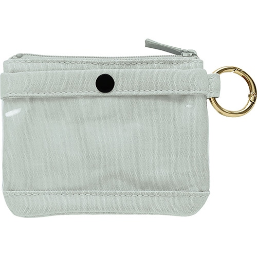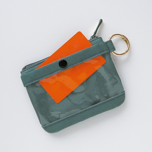 硬貨、二つ折り紙幣、カードが入るサイズのミニポーチ。前面は硬貨や鍵が入る浅型ポケット、背面はICカードが入るクリア素材のポケットになっています。カラビナをベルトループに引っ掛けて手ぶらでお出かけしたり、カバンの持ち手に引っ掛ければ迷子になるのを防ぎます。【検索ハッシュタグ】#ポーチ#ミニ#カード#財布#ウォレット#硬貨