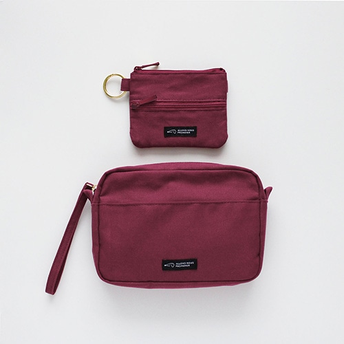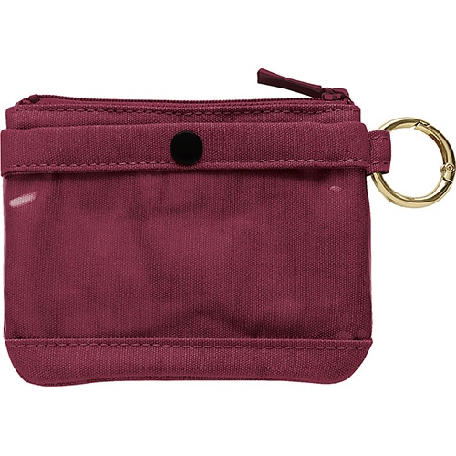硬貨、二つ折り紙幣、カードが入るサイズのミニポーチ。前面は硬貨や鍵が入る浅型ポケット、背面はICカードが入るクリア素材のポケットになっています。カラビナをベルトループに引っ掛けて手ぶらでお出かけしたり、カバンの持ち手に引っ掛ければ迷子になるのを防ぎます。【検索ハッシュタグ】#ポーチ#ミニ#カード#財布#ウォレット#硬貨