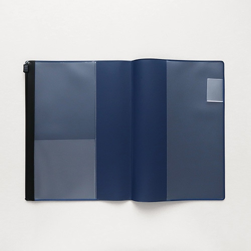 ノートと小物をまとめて持ち歩けるスライダー付きポケットカバー。