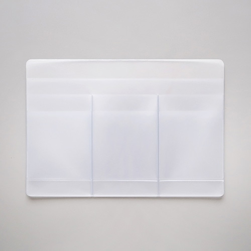 ノートと一緒にカードなども整理できる、B6サイズ対応のマルチポーチ。カード6枚と、お薬手帳や通帳が収納できるカードホルダーが付いていて、病院や銀行に行く際にも活躍します。前面は色付きの透明生地なので、プライバシーを保護しつつ中身が見やすい便利なポーチです。【検索ハッシュタグ】#ポーチ#カード#ノート#B6#手帳