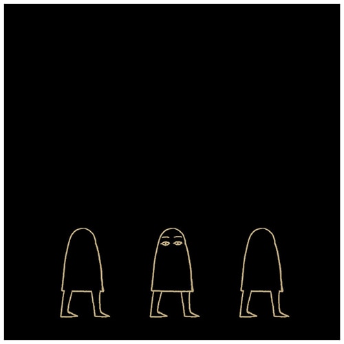 メジェドやエジプトの神が金色で印刷された黒い付箋。