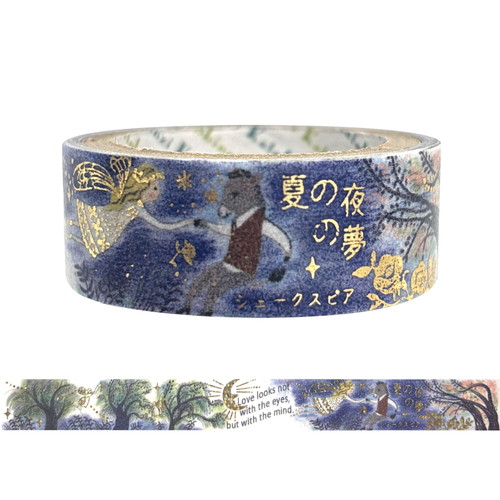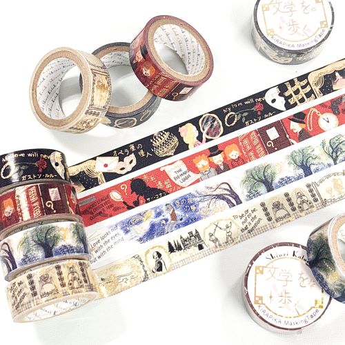 Shinzi Katohが名作文学の世界を色彩豊かに描く「文学を歩く」シリーズのきらぴかマスキングテープ第四弾です。ゴールドホログラム箔をふんだんに使用したデザインです。
