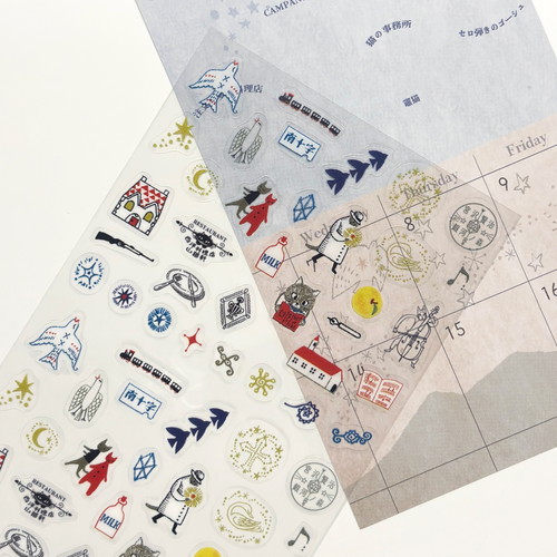 雑貨デザイナー×絵本作家Shinzi Katoh(シンジカトウ)デザイン手帳やノートなどにデコレーションしやすい小さいサイズの透明素材のシールです。同じイラストが2柄ずつ入っているので、保存用にしたりお揃いやシェア使いも楽しめます。【検索ハッシュタグ】#シール#スケジュールシール#手帳#ノート#デコレーション#文具女子#宮沢賢治#銀河鉄道の夜#よだかの星