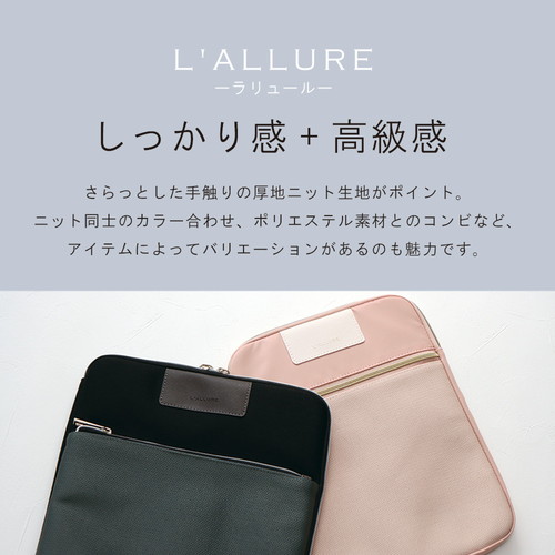 大好評の「ラリュール」が素材も新たにリニューアル! さらっとした手触りの厚地のニット生地はポリエステル100%。 ニット同士のカラー合わせがひとあじ違う高見えなキャリングシリーズになっています。