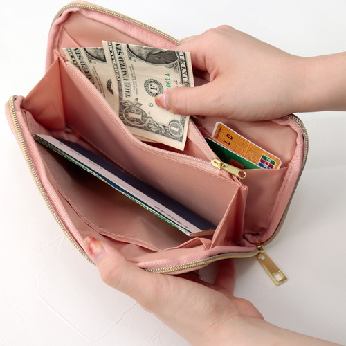 カード収納6枚。仕切りやファスナー付きのポケットなどついた マルチなポーチ。母子手帳や通帳、パスポート入れなどにも。【検索ハッシュタグ】#勝竜社#LABCLIP#オフィス#会社#ビジネス#旅行#トラベル#出張#かわいい#おしゃれ#レディース#かわいい#シンプル#通勤#母子手帳#パスポート#銀行#通帳