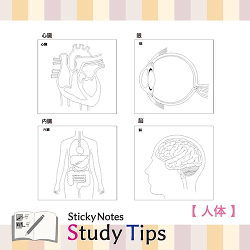 進学塾との共同開発!現役医師監修!しっかり学べる学習付箋 勉強するときに面倒な図の書き写し…。そんな時間を解消するために開発された人体付箋です。