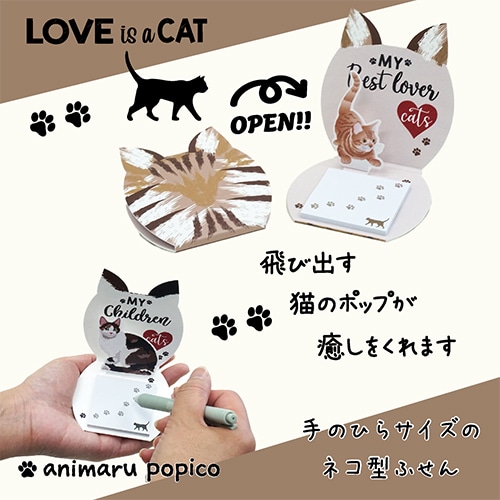 "ラグドール"のねこの飛び出すしかけがついたふせん。 本体が猫の耳がついた頭の形になっており、さわり心地が猫の毛並みのような猫好きの心をくすぐる商品です。