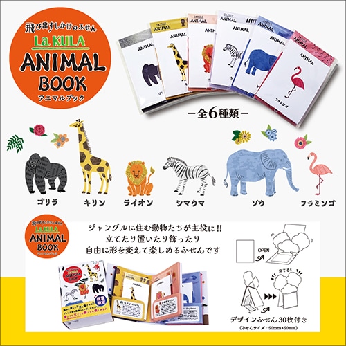 飛び出すしかけつきふせんのアニマルシリーズが図鑑風のオリジナルボックスで6個セットになった商品。 図鑑ボックスは動物好きのお子様も楽しめること間違いなし。