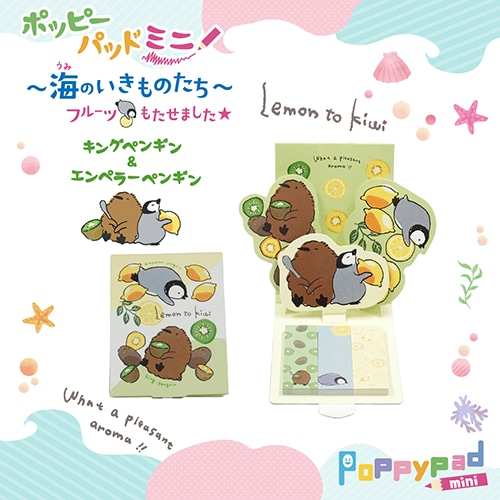 開けるとペンギンとキウイがポップアップする、飛び出すしかけつきふせんの「海のいきもの&フルーツ」シリーズ。 使って可愛い、飾って癒される♪ほっこりやわらかいイラストが魅力の"チナップ"さんのデザイン
