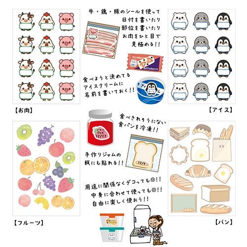 冷凍したフルーツやジャムも可愛くデコりたい!「冷凍庫にいれてたらシールが取れちゃった」という問題を解決する、冷凍しても剥がれない特殊機能シール。 期限や名前など書けるフルーツデザイン。