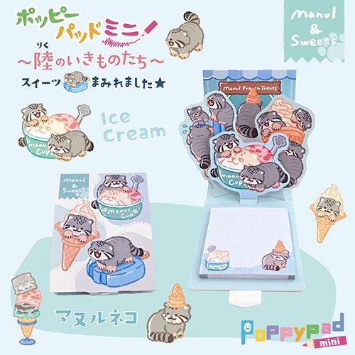 開けるとマヌルネコとスイーツがポップアップ。飛び出すしかけつきふせんの「陸のいきもの&スイーツ」シリーズ。 使って可愛い、飾って癒される♪ほっこりやわらかいイラストの"たけもん"さんのデザイン