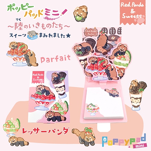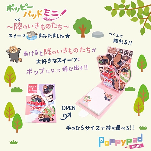 開けるとレッサーパンダとスイーツがポップアップ。飛び出すしかけつきふせんの「陸のいきもの&スイーツ」シリーズ。 使って可愛い、飾って癒される♪ほっこりやわらかいイラストの"たけもん"さんのデザイン