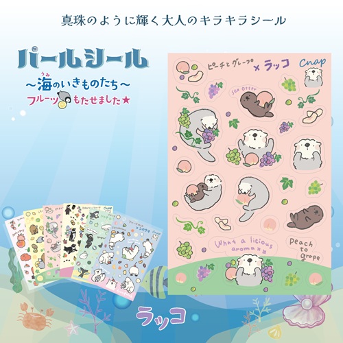 まるで海の中のように、やさしくきらめく大人のキラキラシールです。 ラッコとフルーツと一緒にシールになりました。全部揃えてしまいたくなる可愛さです。