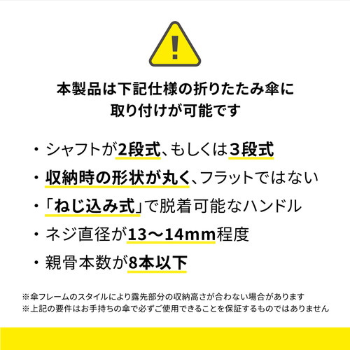 主な機能: AirTag?を装着し、紛失防止・追跡を可能にする。ハンドル内にAirTagを装着。iPhoneで位置を特定できるため、置き忘れを防ぎ紛失時も迅速に追跡できる安心機能です。 工具不要。ハンドルを付け替えるだけで今すぐスマート化 ネジ式の脱着可能なハンドルであれば、誰でも簡単に取り付け可能。お気に入りの傘を、手軽にハイテクな一本へと進化させます。※AirTag?は別途お求めください。【検索ハッシュタグ】#アンベル,オプション,ハンドル,取替
