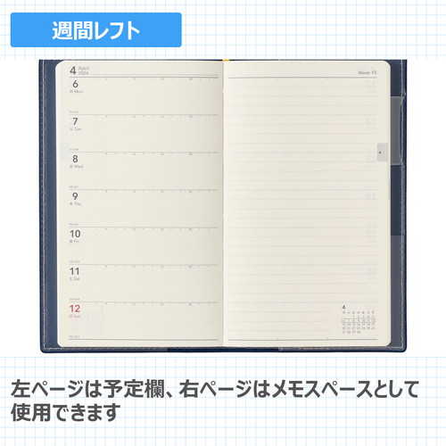 NOLTY(ノルティ)のシンプルウィークリー手帳。仕事にもプライベートにも使いやすい人気のスケジュール帳です。 【月間ページ】見開き1ヶ月のベーシックなブロックタイプ(月曜始まり)。 【週間ページ】見開き1週間のレフトタイプ(月曜始まり)。予定とメモにバランスよく使えるので、初心者にもおすすめのレイアウトです。 モデルチェンジ:・裏表紙のNOLTYのロゴマークを廃止し、より多くの人が使いやすいシンプルなデザインに変更しました。