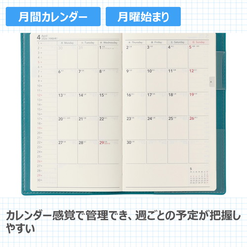 #日本能率協会 NOLTY 手帳 2026年 ウィークリー ポケットカジュアル 1 サーフグリーン 1504 (2025年 12月始まり)