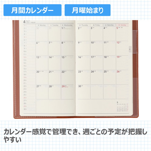 NOLTY(ノルティ)のシンプルウィークリー手帳。仕事にもプライベートにも使いやすい人気のスケジュール帳です。 【月間ページ】見開き1ヶ月のベーシックなブロックタイプ(月曜始まり)。 【週間ページ】見開き1週間のレフトタイプ(月曜始まり)。予定とメモにバランスよく使えるので、初心者にもおすすめのレイアウトです。 モデルチェンジ:・裏表紙のNOLTYのロゴマークを廃止し、より多くの人が使いやすいシンプルなデザインに変更しました。