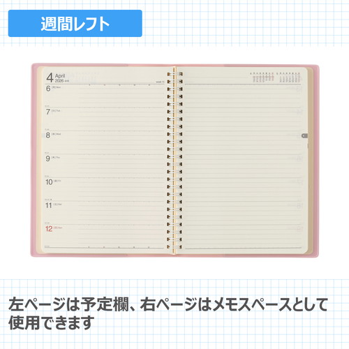 #日本能率協会 NOLTY 手帳 2026年 A5 ウィークリー リング ピンク 6422 (2025年 12月始まり)