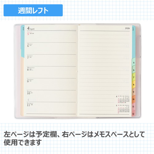 #日本能率協会 ペイジェム 手帳 2026年 ウィークリー コンパクト レフト ピンク 2209 (2025年 12月始まり)