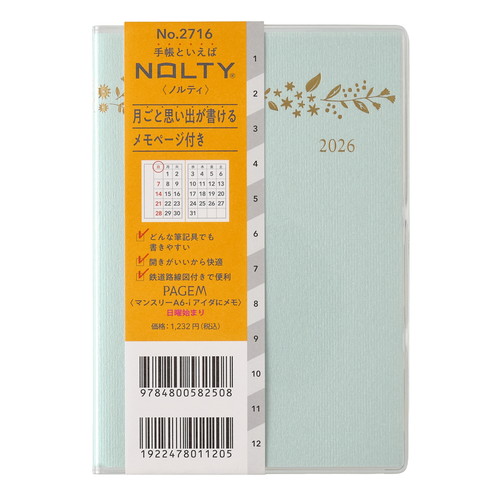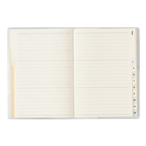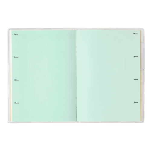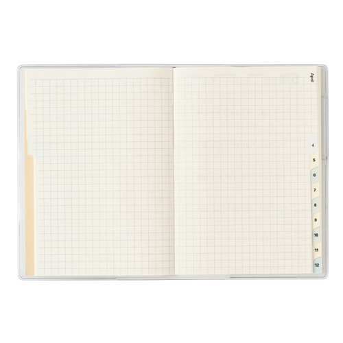 PAGEM by NOLTY(ペイジェム バイノルティ)のマンスリー手帳、A6-iアイダにメモシリーズは、各月のアイダにメモページと方眼ページが2ページずつ付いているのが特長です。 【月間ページ】持ち運びにも便利なA6サイズ(日曜始まり)。すっきりとしたデザインのレイアウトで、ストレスなく書き込めます。1日のマスを上下に二分割しているので「午前/午後」「自分/家族」など予定を整理して記入できます。 ※表紙を変更しました