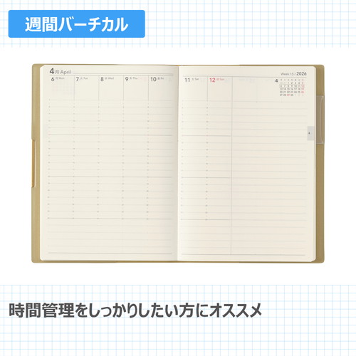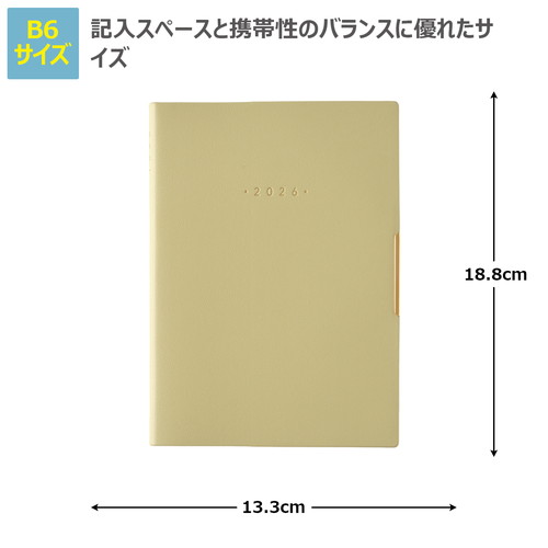 プランとログページが充実のNOLTY(ノルティ)のおすすめ手帳「エクリPlusB6」 人気のエクリB6手帳の機能はそのままに巻末ページを16ページ追加しています。 巻末には1年を大切に過ごせるような様々な記録フォーマットを用意しました。 表紙はシンプルながらも上品な色合い、あしらいで華やかさをプラスしました。 【月間ページ】見開き1ヶ月のベーシックなブロックタイプ(月曜始まり)。カレンダーと同じような感覚で見ることができ、週ごとの予定が把握しやすいのが特徴です。 【週間ページ】見開き1週間で全面に時間軸を配置したバーチカルタイプにメモスペースも確保したレイアウト。細かなスケジュール管理に加え、その週のメモも取りたいという方におすすめです。 モデルチェンジ:・裏表紙のNOLTYのロゴマークを廃止し、より多くの人が使いやすいシンプルなデザインに変更しました。 ※表紙を変更しました