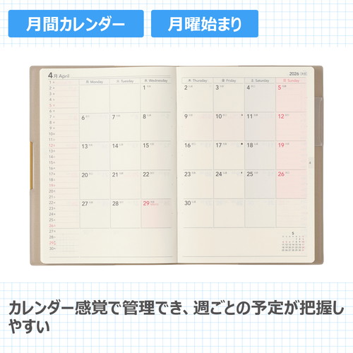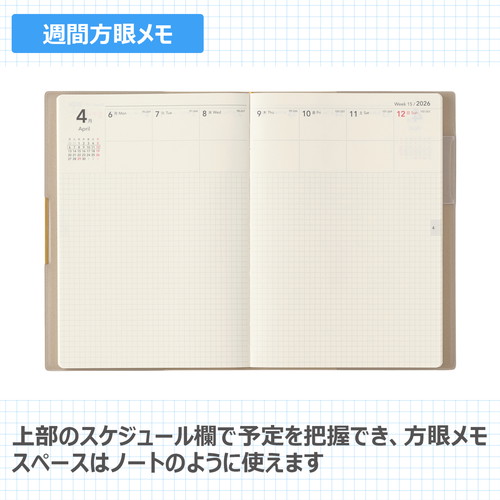 #日本能率協会 NOLTY 手帳 2026年 B6 ウィークリー エクリPlus メモ ベージュ 2320 (2025年 12月始まり)
