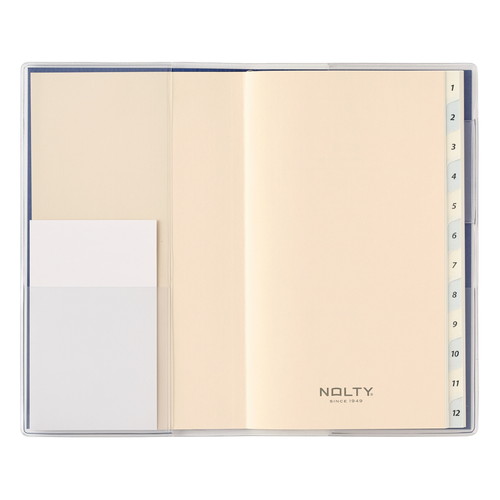 NOLTY(ノルティ)のシンプルマンスリー手帳、インデックス付きタイプ。 いつでも持ち運べて予定管理をしやすいおすすめのスケジュール帳です。 【月間ページ】見開き1ヵ月のベーシックなブロックタイプ(月曜始まり)。カレンダー感覚で月ごとの予定が把握できます。