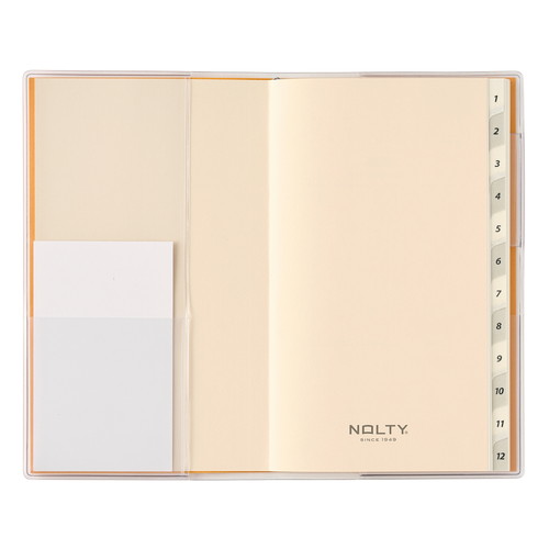 NOLTY(ノルティ)のシンプルマンスリー手帳、インデックス付きタイプ。 いつでも持ち運べて予定管理をしやすいおすすめのスケジュール帳です。 【月間ページ】見開き1ヵ月のベーシックなブロックタイプ(日曜始まり)。カレンダー感覚で月ごとの予定が把握できます。