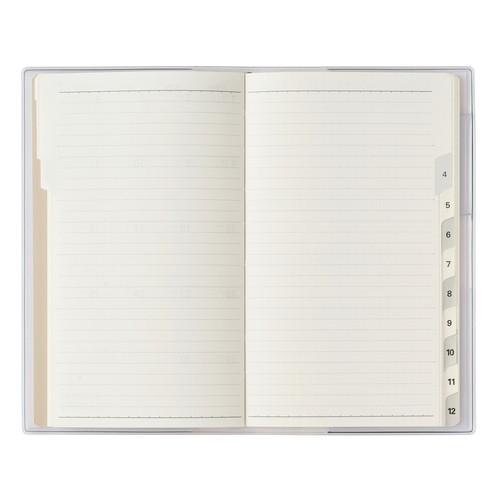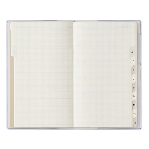 NOLTY(ノルティ)のマンスリースリム-iアイダにメモ手帳は、各月のアイダにメモページと方眼ページが2ページずつ付いているのが特長です。 【月間ページ】見開き1ヵ月のベーシックなブロックタイプ(日曜始まり)。各月ごとに罫ページと方眼ページが付いているので、その月のできごとをメモするのに便利。 見たいページをパッと開けるインデックス付きです。