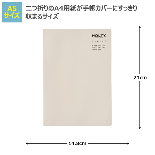 予定もタスクもメモもアイデアも。専用手帳カバーにダイアリーとノートをまとめて収納できるNOLTY(ノルティ)のTiO(ティオ)シリーズ ティオはノートタイプの手帳となります。(汚れや水に強いPP加工を採用した紙の表紙の手帳です) ■自分らしくカスタマイズ■ さまざまな組み合わせができるシンプルなダイアリーとノート、カバーをご用意しました。セットして使うことでシーンや気分に合わせ自分らしく使えます。 ■組み合わせでも単独でも■ 使いやすさを第一に。ダイアリーもノートも細部までこだわり抜いて設計しました。 ダイアリーの表紙は、汚れや水に強いPP加工を採用。カバーと組み合わせても、手帳単独でもご使用頂けます。 2週間ブロックタイプはノートとの組み合わせはもちろん、マンスリータイプと組み合わせても便利に使えます。 モデルチェンジ:・印刷インデックスが入りました
