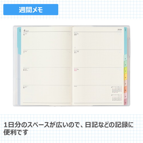 PAGEM by NOLTY(ペイジェム バイノルティ)の仕事でも使える人気ウィークリー手帳。TBSの人気番組「王様のブランチ」とコラボした、女性目線で作られたダイアリーです。 【月間ページ】見たいページがパッと開けるインデックス付き(月曜始まり)。 【週間ページ】見開き1週間で左右のページに日付が分割されているメモタイプのレイアウトで、日記や食事の記録などに便利です。【別冊】「マネーチェック」「ヘルスマネジメント」など生活に役立つスペシャルリストブック付き。 モデルチェンジ:・週間ページが罫線から方眼に変わりました ・分冊掲載資料が変わりました ※表紙を変更しました