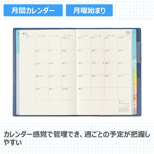 #日本能率協会 王様のブランチ×ペイジェム 手帳 2026年 B6 ウィークリー ブロック ミッドナイトネイビー 2250 (2025年 12月始まり)