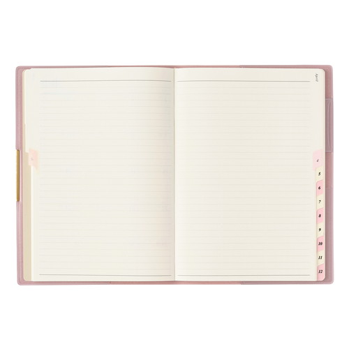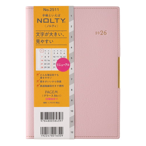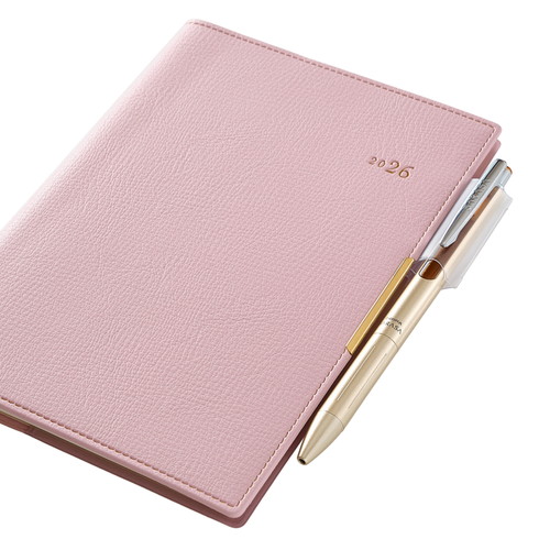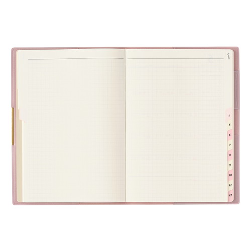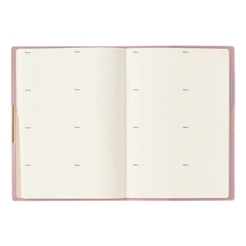 PAGEM by NOLTY(ペイジェム バイノルティ)のマンスリー手帳、グラースB6シリーズは、金具付きでステッチのような箔のデザインが縁に施されているエレガントな表紙が特長です。 【月間ページ】ダブルマンスリータイプが人気の月間ブロックタイプ(日曜始まり)。すっきりとしたデザインのレイアウトで、ストレスなく予定を書き込めます。各月ごとに罫ページが付いているので、その月のできごとをメモするのに便利。 ※表紙を変更しました