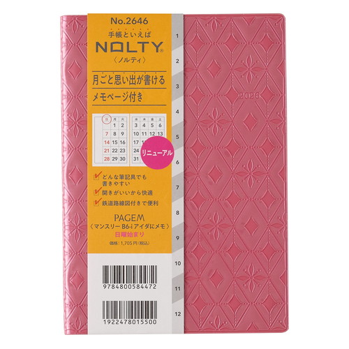 #日本能率協会 ペイジェム 手帳 2026年 B6 マンスリー アイダにメモ ピンク 2646 (2025年 11月始まり)