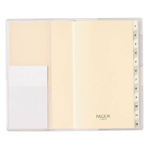PAGEM by NOLTY(ペイジェム バイノルティ)のマンスリー手帳シリーズは、1ヵ月の予定をパッと見渡すことができ、スリムなので持ち運びの際にもかさばらないのが特長です。 【月間ページ】見開き1ヵ月のベーシックなブロックタイプ(日曜始まり)。カレンダー感覚で月ごとの予定が把握しやすいのが特長で、見たいページをパッと開けるインデックス付きです。 リバーシブル表紙(裏面は柄のないデザインです) ※表紙を変更しました