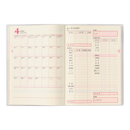 花柄で人気のイギリスのブランドLAURA ASHLEYの家計簿シリーズ 【月間ページ】見開き1ヵ月のブロックタイプ(月曜始まり)。 【レイアウト】「食費」などの費目ごとに管理するベーシックな週計タイプ。「年間収支記録表」「医療費の控え」など便利な巻末資料や、レシートなどの保存に便利なしおりポケット付きです。 ※表紙を変更しました