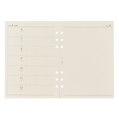 能率手帳の会社がつくるシステム手帳ブランドBindex by NOLTY (バインデックス バイ ノルティ)のリフィル(A5サイズ)。 チェックリスト付日記欄。 午前・午後・夜が一目でわかるゾーンスケジュールタイプ。