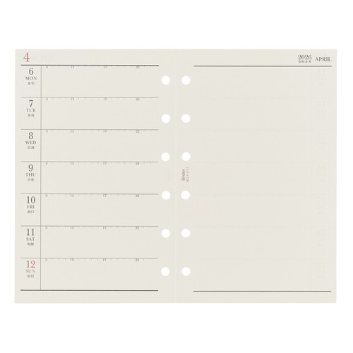 能率手帳の会社がつくるミニ6穴サイズシステム手帳用リフィル。 時間目盛りの付いた、定番の1週間タイプ。 Petit PAGEMは2026年版よりBindex by NOLTYへのブランド統合を予定しております。