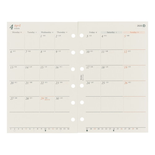 能率手帳の会社がつくるミニ6穴サイズシステム手帳用リフィル。 土日の記入欄が広い 週末重視型なのでプライベート優先での使用におすすめです。 Petit PAGEMは2026年版よりBindex by NOLTYへのブランド統合を予定しております。