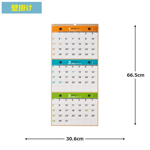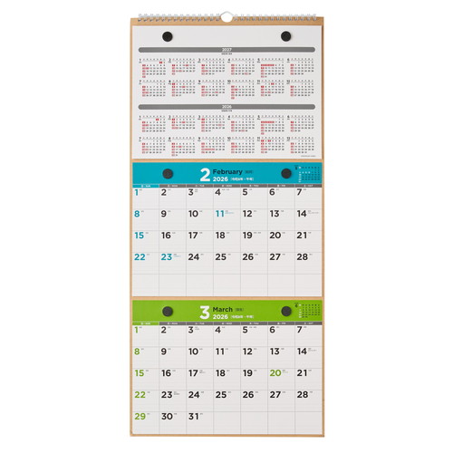 #日本能率協会 NOLTY 2026年 カレンダー 壁掛け A4×3段 3ヶ月 C153