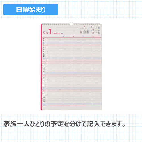 #日本能率協会 ペイジェム ファミリー 2026年 カレンダー 壁掛け B4変型 C302