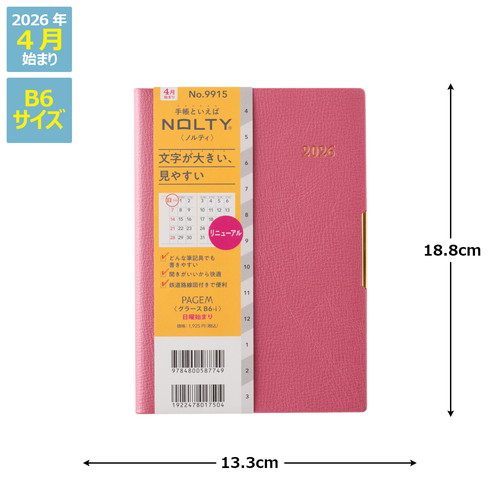 #日本能率協会(国内販売のみ) ペイジェム 手帳 2026年 4月始まり B6 マンスリー グラース 日曜始まり チェリーピンク 9915