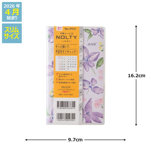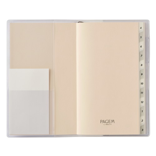 PAGEM(ペイジェム)のマンスリー手帳シリーズは、1ヶ月の予定をパッと見渡すことができ、軽くて持ち運びの際にもかさばらないのが特徴です。【月間ページ】見開き1ヶ月のベーシックなブロックタイプ(日曜始まり)。カレンダー感覚で月ごとの予定が把握しやすいのが特徴で、見たいページをパッと開けるインデックス付きです。