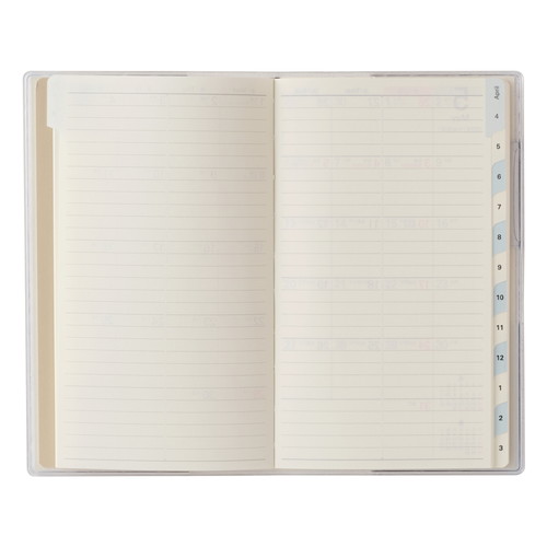 PAGEM(ペイジェム)のマンスリー手帳シリーズは、1ヶ月の予定をパッと見渡すことができ、軽くて持ち運びの際にもかさばらないのが特徴です。【月間ページ】見開き1ヶ月のベーシックなブロックタイプ(日曜始まり)。カレンダー感覚で月ごとの予定が把握しやすいのが特徴で、見たいページをパッと開けるインデックス付きです。