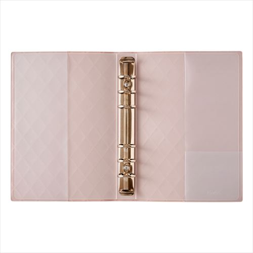 “書く”“綴じる”“持ち運ぶ”をもっと気軽に使えるバイブルサイズシステム手帳用バインダー キルティングパターンの型押しがされているカバーは取り外しが可能です。 6穴タイプ リング径は19mm。 ■サイズ(mm):195x140x30(mm) ■リングタイプ:6穴 ■リング径:19mm ■素材:PVC ■重さ:140g ■日本製
